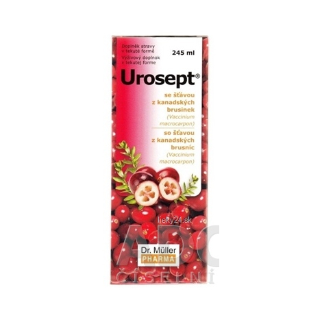 Výživový doplnok v tekutej forme so šťavou z kanadských brusníc (Vaccinium macrocarpon), ktorá obsahuje proanthokyanidíny (PAC) .