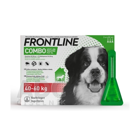 Roztok na vonkajšiu aplikáciu na kožu zvieraťa s účinnými látkami fipronilum 402 mg a (S)-Methoprenum 361,8 mg.
