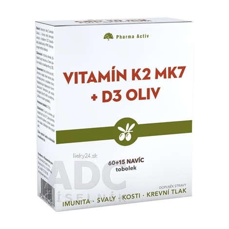 Výživový doplnok s obsahom vitamínov K2 (menachinón), D3 (cholekalciferol) a olivového oleja.