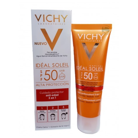 Charakteristika: VICHY Ideal Soleil Anti-age krém poskytuje veľmi vysokú ochranu SPF 50+. Nemastná textúra navrhnutá pre každodenné použitie, s termálnou vodou Vichy.